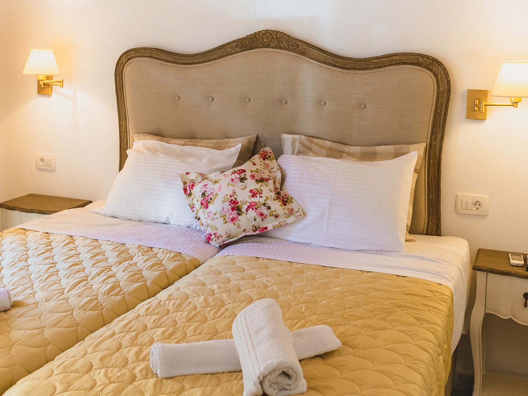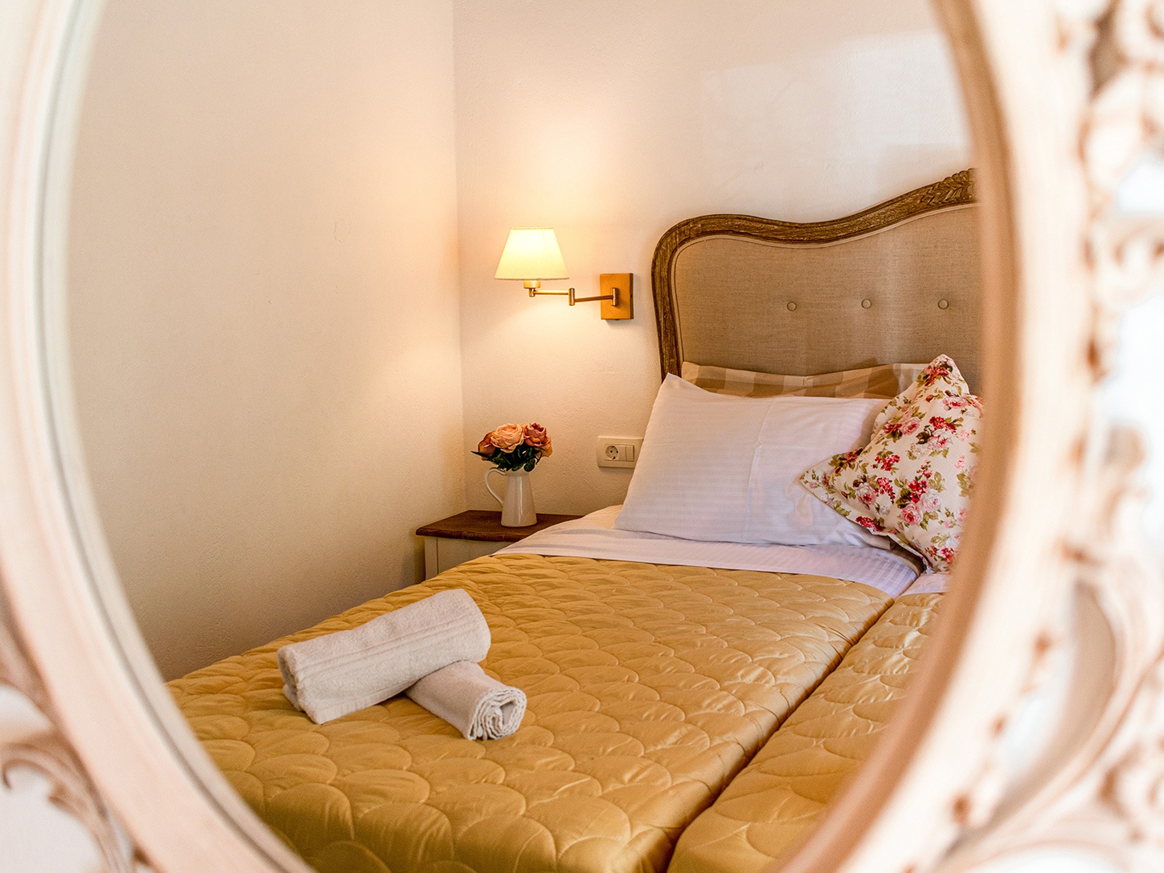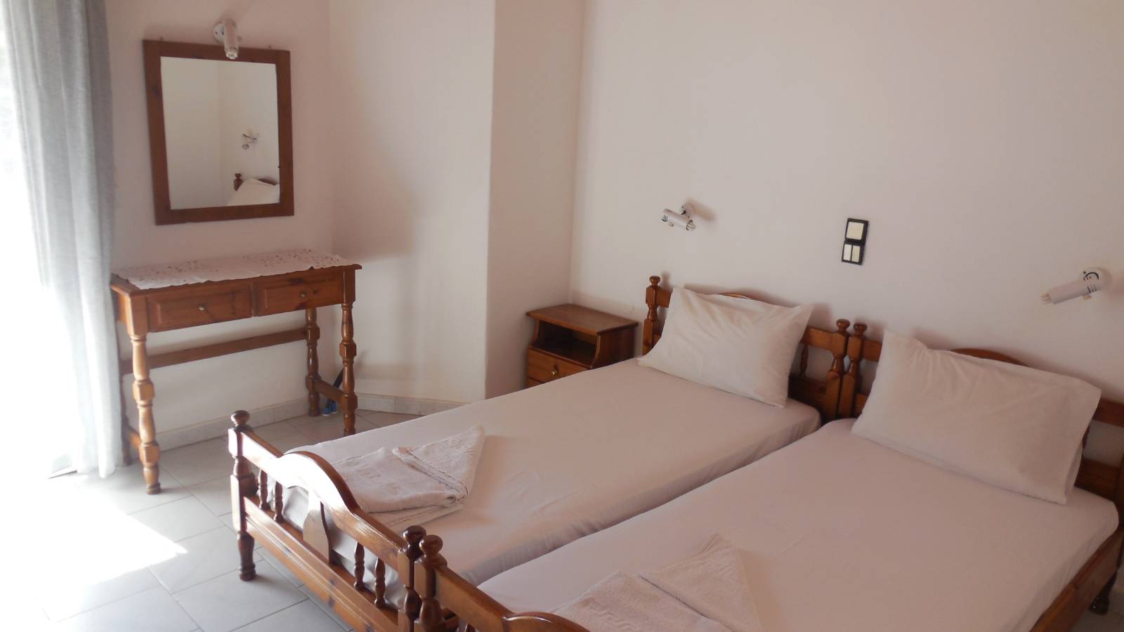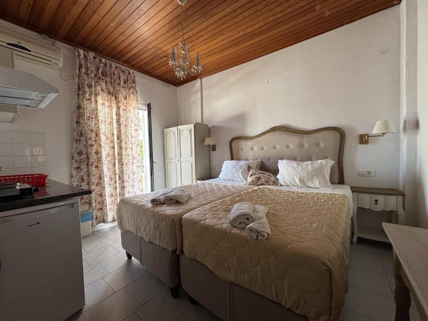 Vila se sastoji od dvokrevetnih studija, koji su raspoređeni na prvom i drugom spratu. Svaki studio je opremljen čajnom kuhinjom, kupatilom, terasom, TV-om i klima uređajem. Korišćenje klima uređaja se doplaćuje 7€ po danu.