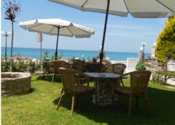 Ovaj lep mali hotel apartmanskog tipa, nalazi se na sredini prelepe Vrahos plaže, na samoj plaži, od koje je deli samo šetalište uz more. Flevas Mill, sa svojom odličnom pozicijom, lepim studijima i apartmanima, vrtom, igralištem za decu, velikim tremom za sedenje, zidanim roštiljem, barom sa stolovima u vrtu, predstavlja pravi razlog za boravak porodica, ali i parova željnih prirode i mira u ovom delu Grčke. Suncobrani i ležaljke na plaži su na raspolaganju gostima uz doplatu ili jedno piće po osobi. Lepi, prostrani, dobro opremljeni studiji i apartman se nalaze na prizemlju ili malo izdignutom prizemlju i imaju pogled na vrt i bočno na more. Dvokrevetni + 2 studio se nalazi na prizemlju i sadrži kuhinjski deo, francuski ležaj i krevete na sprat (za decu do 12 godina), kupatilo i terasu sa garniturom za sedenje. U objektu se nalazi i dvokrevetni + 2 studio na izdignutom prizemlju i sadrži kuhinjski deo, francuski ležaj i sofu na otvaranje (dece do 12 godina), kupatilo i terasu sa garniturom za sedenje. Veličina ovih studija je cca 18 – 20 kvm + terasa. Trokrevetni + 1 apartman se nalazi na izdignutom prizemlju i sadrži kuhinju u kojoj je nešto manji standardni ležaj, spavaće sobe sa francuskim i standardnim ležajem, kupatila i terase sa garniturom za sedenje. Veličina apartmana je cca 24 kvm + terasa. Svi studiji i apartmani su opremljeni jednim klima uredjajem (uz doplatu na licu mesta (opcija) 7 eura dnevno po studiju/apartmanu), wi – fi Internetom, fenom i TV-om. Vila Flevas Mill je B + kategorije, ima peškire i parking.