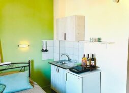1/2, 1/3, 1/4 studio– smeštajna jedinica u vili u kojoj se u istom prostoru nalazi deo sa kuhinjskim elementima sa osnovnim priborom za jelo za odgovarajući broj osoba (prema broju ležajeva), kreveti, orman, kupatilo i terasa. 1/4 studio može da sadrži francuski ležaj (grčki standard) I krevet na sprat, a 1/2 odnosno 1/3 studiji sadrže francuski ležaji/ili singl ležaj (grčki standard).