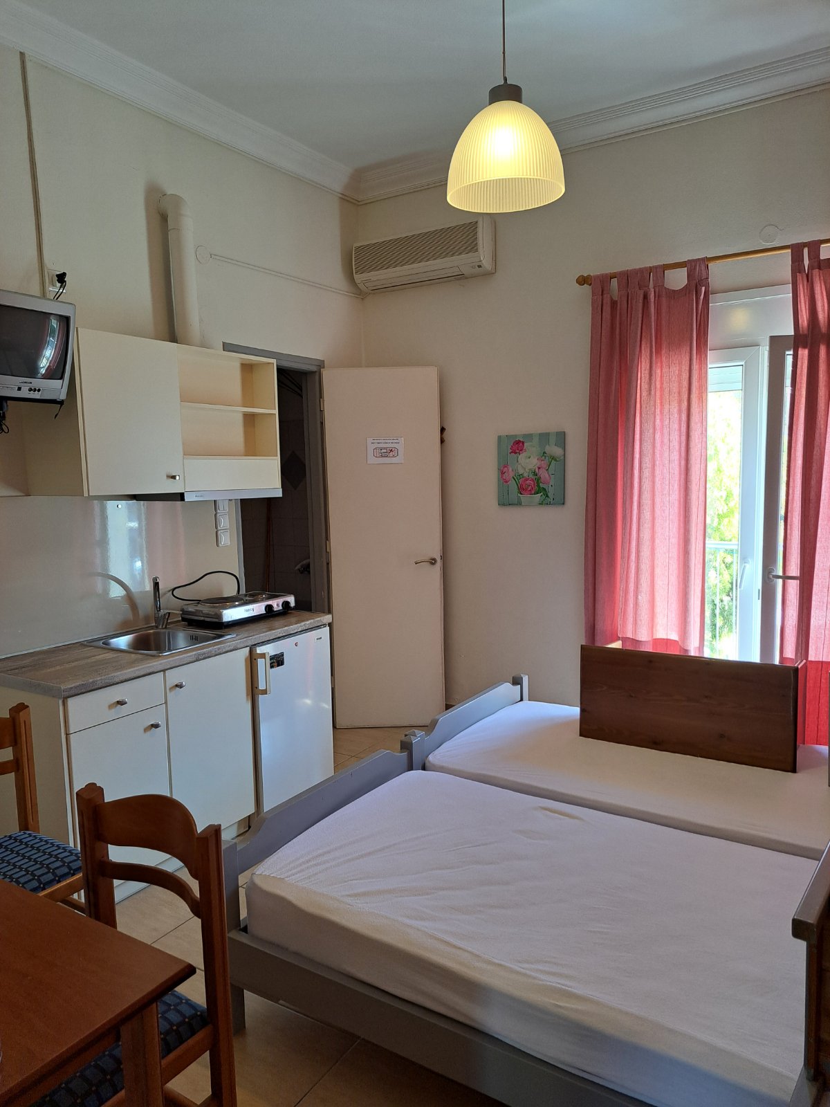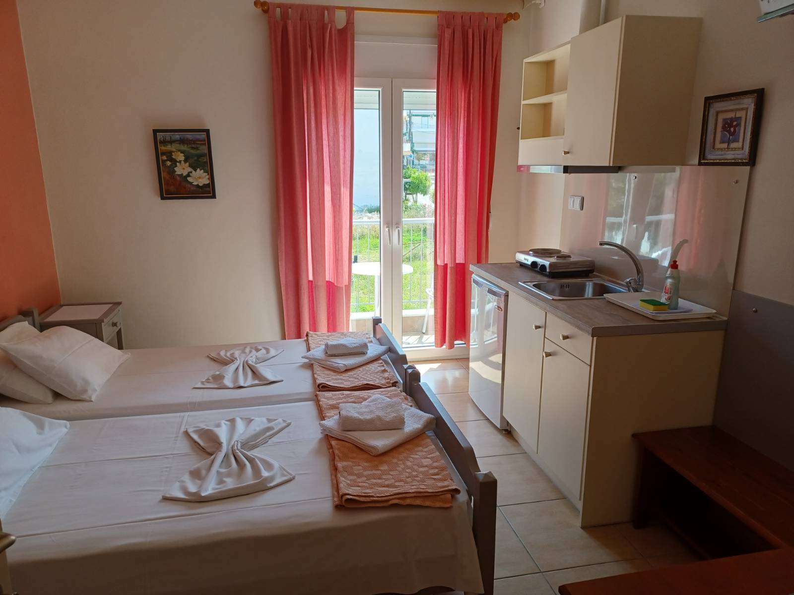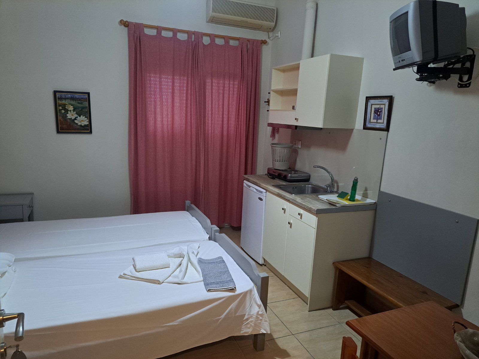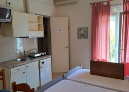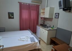 VILA FAROS- hotel apartmanskog tipa nalazi se na približno 60 metara od najbliže plaže i centra, dok je do plaže sa termalnim izvorima udaljen oko 800 metara.Sadrži lift, recepciju i manji lobi. Svi studiji i apartmani opremljeni su klima uređajem (doplata 3€ dnevno), Wi-Fi internetom (uključenim u cenu) i TV-om.