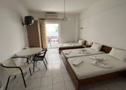 Opis: Smeštajne jedinice u našoj ponudi su dvokrevetni,trokrevetni i četvorokrevetni studiji , nalaze se na prvom,drugom i trećem spratu . Svaki studio poseduje opremljen kuhinjski deo, kupatilo/wc, peškire, terasu,lift, TV, WiFi internet i klima uređaj (uz doplatu na licu mesta od 5e dnevno). Vila ima lift.