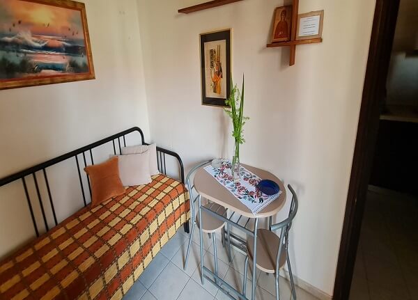 Opis smeštajnih jedinica: 1/2+1 studio- dnevni boravak sa singl ležajem i spavaćom sobom sa francuskim ležajem koja je odvojena pregradnim zidom bez vrata. U nastavku dnevnog boravka je kuhinja, kupatilo, terasa, AC.