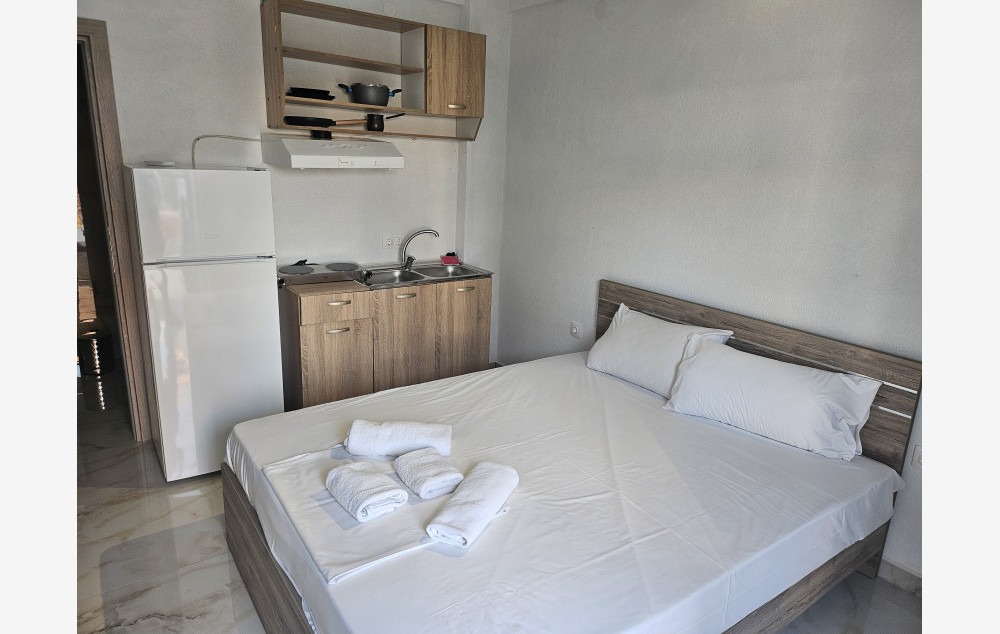 Opis: Poseduje dvokrevetna studija koja su smeštena u prizemlju. Svaki od njih ima opremljen kuhinjski deo, kupatilo/wc, terasu, TV, WiFi internet i klima uređaj (uključen u cenu aranžmana). Ovo je objekat visokog kvaliteta, sa komfornim studijima i odličnom pozicijom.