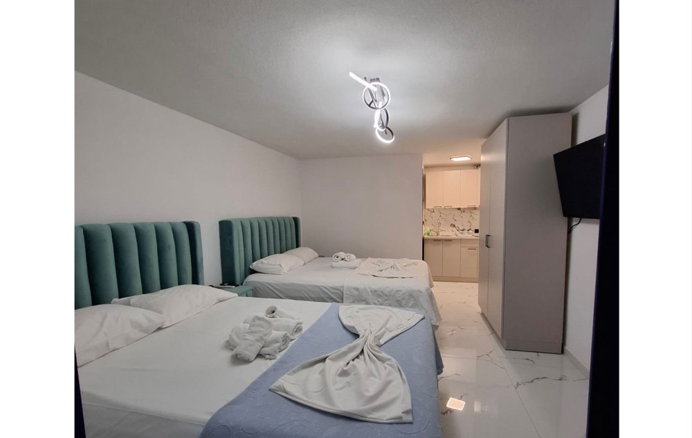 Opis: Izvrsna lokacija na kojoj se nalazi, pruža mogućnost mirnog odmora. Vila je deo kompleksa, a raspolaže dvokrevetnim, trokrevetnim i četvorokrevetnim studijima, kao i apartmanima i mezonetama, koje su namenjene za smeštaj od četiri do šest osoba. Smeštajne jedinice se nalaze u prizemlju ili na prvom spratu, sve su renovirane, a većina ih ima pogled na more. Sve smeštajne jedinice poseduju opremljen kuhinjski deo, kupatilo/wc, terasu sa garniturom za sedenje, TV, WiFi i klima uređaj (uz doplatu na licu mesta od 7€ dnevno). Nedaleko od vile nalaze se market, pekara, suvenirnica, veliki broj restorana, kafića i butika. U prvoj zgradi se nalazi i prelep kafe-restoran (beach bar), koji vam pruža mogućnost dodatnog odmora uz veliki izbor pića uz pogled na more. Parking za goste koji dolaze automobilom je moguć u neposrednoj blizini na javnom parkingu.