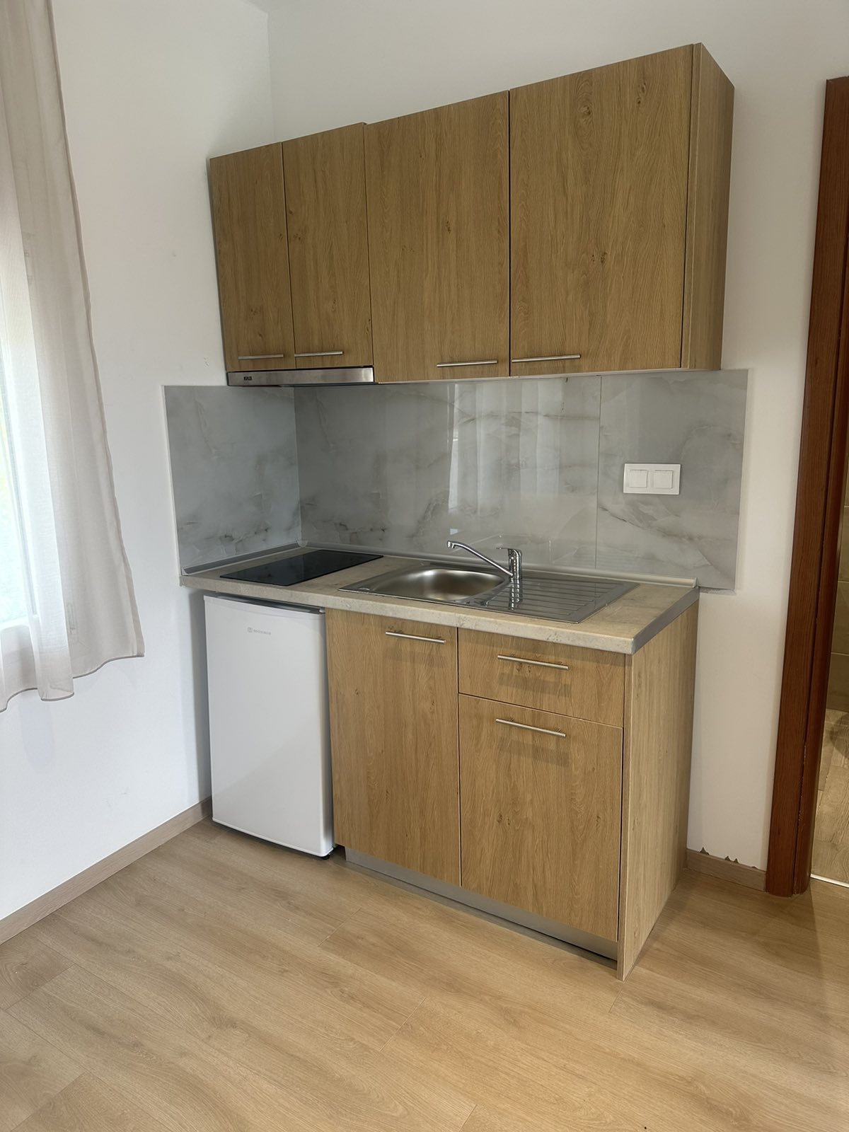 Svaki studio ima čajnu kuhinju (osnovno posuđe, frižider, rešo sa dve ringle), TWC, TV, klima uređaj i terasu. Trokrevetni studiji imaju francuski ležaj i klasičan ležaj ili 3 klasična ležaja. Korišćenje klima uredjaja  je uključeno u cenu u periodu 10. juli – 30. avgust. Van ovog perioda klima se doplaćuje 7 € po danu. Gostima je na raspolaganju WI-FI internet ( agencija nije odgovorna za kvalitet i brzinu ).