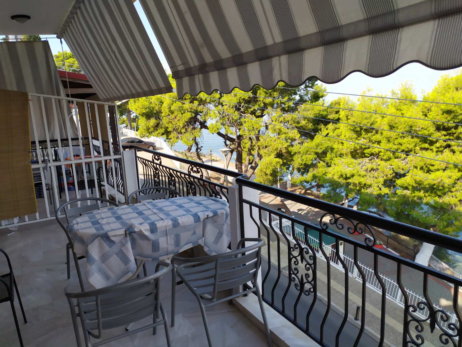 VILA KAIKI nalazi se u središnjem delu Neos Marmarasa, na samoj obali – šetalištu. Ima fantastičan pogled na dok i more. Udaljena je od glavne plaže oko 300m. Vila poseduje apartmane i studije sa direktnim pogledom na more. Studiji se sastoje iz spavaćeg dela i opremljene kuhinje, kao i kupatila. Apartmani su tipa dupleks sa dve spavaće sobe, opremljenom kuhinjom, kupatilom sa tuš kabinom. Smeštajne jedinice imaju prostrane terase sa garniturom za sedenje i tendom sa direktnim pogledom na more. Kuhinje i kupatila su renovirani 2021.god. Studiji i apartmani se nalaze na drugom spratu. Poseduju TV i klima uređaj čije je korišćenje uključeno u cenu, Wi-Fi (agencija ne garantuje za kvalitet interneta). Gosti dobijaju jedan peškir po osobi. Promena posteljine i peškira vrši se na 5 dan.