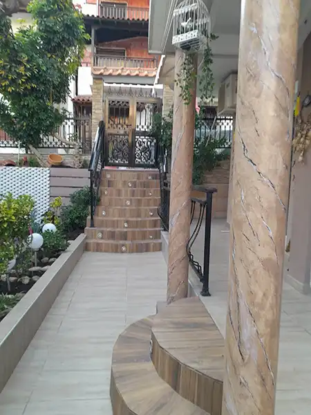 Apartmani se nalaze u prizemlju vile i gledaju na ulicu. U dvorištu vile se nalaze garniture za sedenje i svaki apartman ima svoj dvorišni deo za sedenje, kao i poseban ulaz sa ulice.