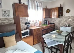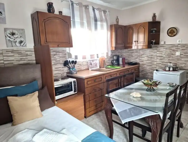 USLUGA: Najam apartmana. SMEŠTAJ: Vila raspolaže 1/4 apartmanima koji se nalaze u prizemlju vile i sadrže kompletno opremljenu kuhinju, WI-FI, klima uređaj (doplata 5 eura na licu mesta), TWC, terasu, TV. Promena posteljine i peškira na 5 dana. SADRŽAJ: U blizini vile, na nekih 150m, nalazi se veći besplatni javni parking .