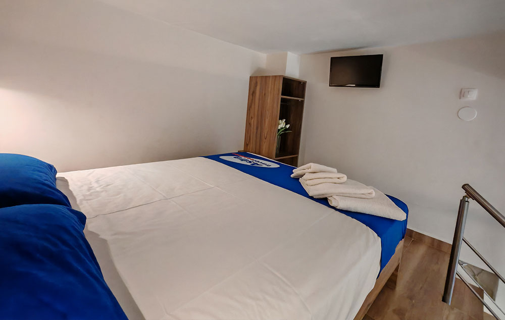 Oprema: Svi studiji i apartmani imaju terasu, wc i tuš sa toplom i hladnom vodom, sto i stolice, orman, kuhinju sa frižiderom koja je opremljena prema broju osoba (tanjiri, čaše, šolje, escajg, šerpa, tiganj, djezva za kafu). Promena posteljine je na pola smene, za smene duže od 7 noći. Domaćini kuća na dan zamene posteljine dostavljaju čistu posteljinu koju gosti sami menjaju kao što i sami održavaju higijenu apartmana tokom svog boravka. Pored standardne opreme apartmani mogu imati odredjenu opremu koja ih izdvaja u odnosu na ostale apartmane iz ponude. U cenovnicima se pored naziva određenih kuća nalaze brojevi. Brojevi su konkretni brojevi određenog studija ili apartmana koji se u određenom smislu razlikuje u odnosu na studije/apartmane istog tipa u okviru kuće. To se može odnositi na veličinu ili lokaciju terase, kao i na prostranost samog apartmana, zbog koje i postoji razlika u ceni u odnosu na ostale iz određene kuće. Molimo goste da ponesu svoje peškire, s obzirom da peškiri nisu deo standardine opreme studija/ apartmana.