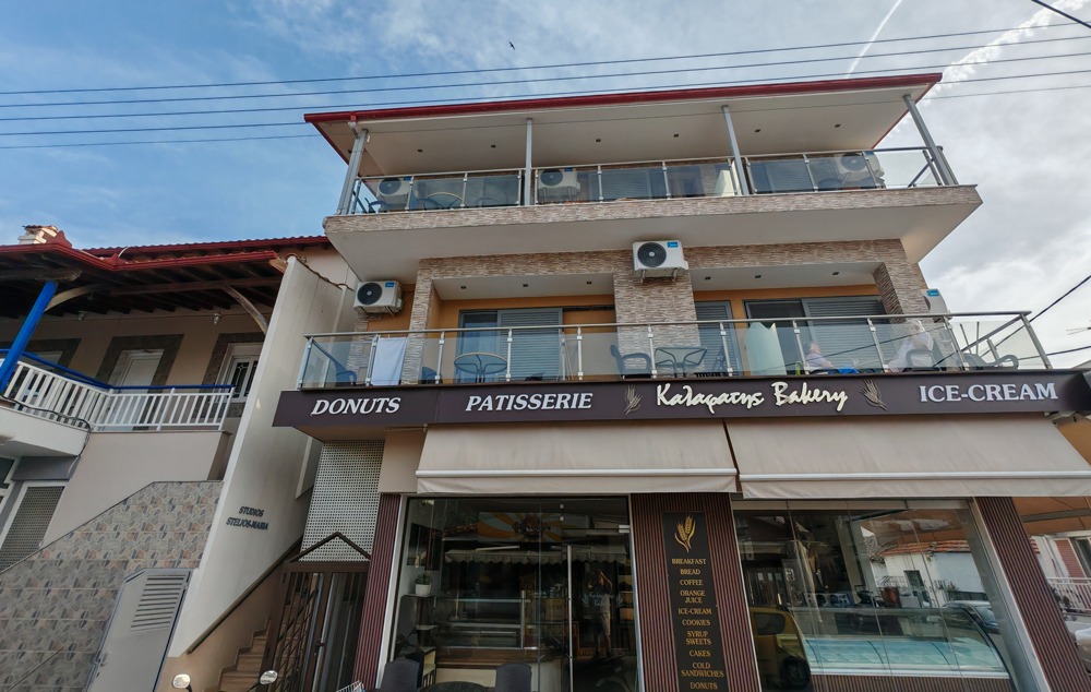 Vila Stelios Maria nalazi se na 70m od plaže u starom delu Sartija. Studiji za 2 do 4 osobe nalaze se na prvom i drugom spratu. Kuća ima SAT TV, klima uređaje čije je korišćenje uključeno u cenu u julu i avgustu, kao i signal za besplatno korišćenje bežičnog interneta. Na prvom spratu su studio br. 1 koji je manje kvadrature i studio br. 2 koji ima užu terasu, i zbog toga imaju i nižu cenu.