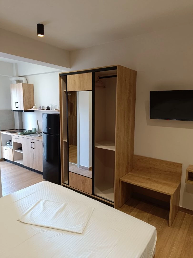 Svi studiji su opremljeni čajnom kuhinjom (frižider, mini električni šporet, posuđe), kupatilom, terasom, TV-om, klima uređajem koji se doplaćuje na licu mesta.