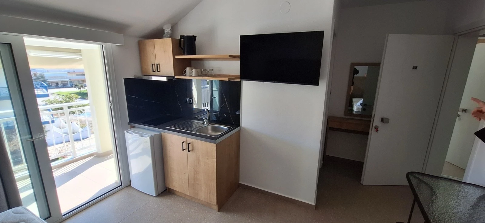 1/2, 1/3, 1/4 studio– smeštajna jedinica u vili u kojoj se u istom prostoru nalazi deo sa kuhinjskim elementima sa osnovnim priborom za jelo za odgovarajući broj osoba (prema broju ležajeva), kreveti, orman, kupatilo i terasa. 1/4 studio može da sadrži francuski ležaj (grčki standard) I krevet na sprat, a 1/2 odnosno 1/3 studiji sadrže francuski ležaji/ili singl ležaj (grčki standard).