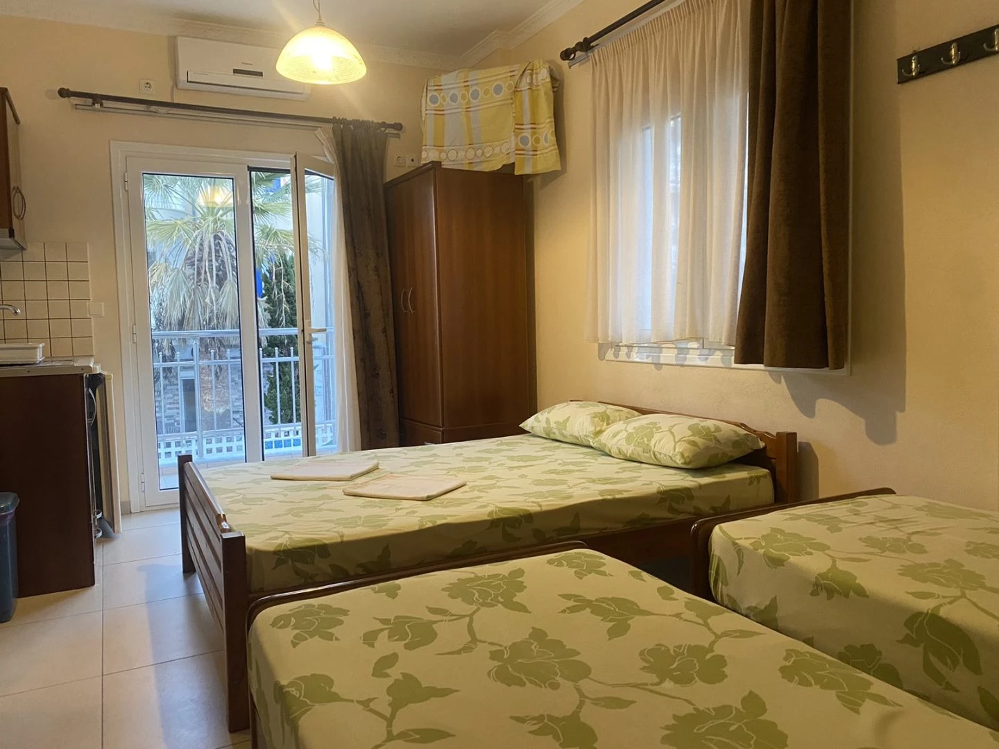 Studiji su komforni, sadrže kupatilo, čajnu kuhinju (rešo, frizider i potrebni pribor), terasu (sa garniturom za sedenje), tv, klimu (doplata na licu mesta 6€ dnevno). Peškiri i ostali higijenski pribor nisu sastavni deo studija (poneti sopstvene) i čistoću studija održava sam korisnik.