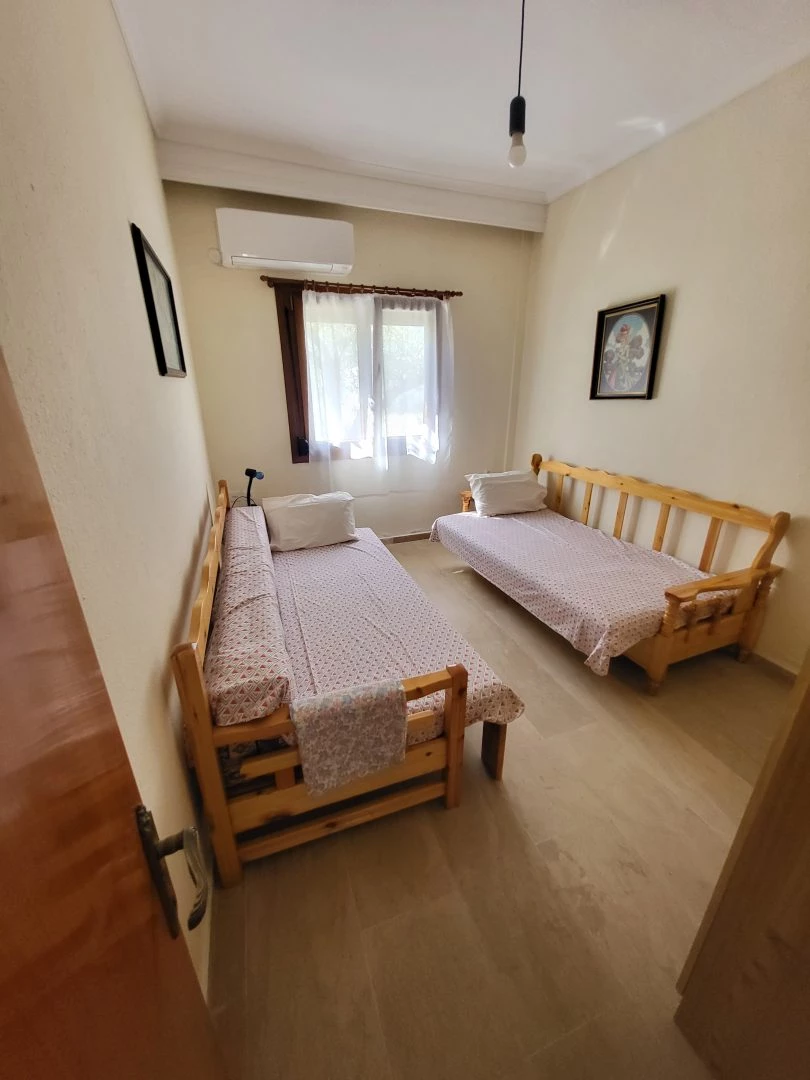 Prostrani triplex sa kompletno opremljenom kuhinjom sa trpezarijom, kupatilom, terasom i klima uređajem (čije se korišćenje plaća na licu mesta 5 eura dnevno), nalazi se u prizemlju i ima tri odvojene sobe sa francuskim ili dva singl kreveta.