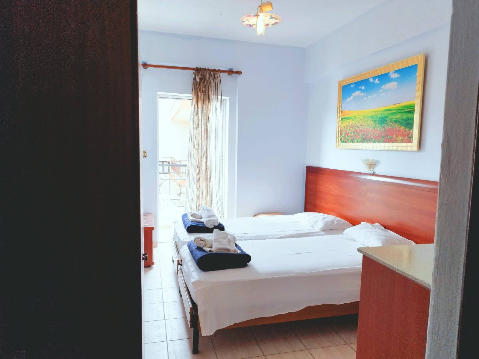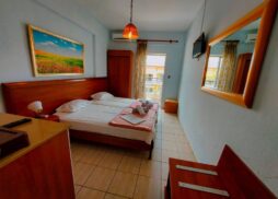 Vila Afrodite – se nalazi u samom centru mesta, na svega 80m od plaže. Dvokrevetni studio opremljen kupatilom, TV – om, terasom, čajnom kuhinjom i klimom. Apartman A4/A3/A2- je apartman sa jednom spavaćom sobom sa 2 kreveta + kuhinjski deo sa 2 kreveta, TWC, TV, terasa. Klima se doplaćuje 3 eur/po danu/po studiju/apartmanu.