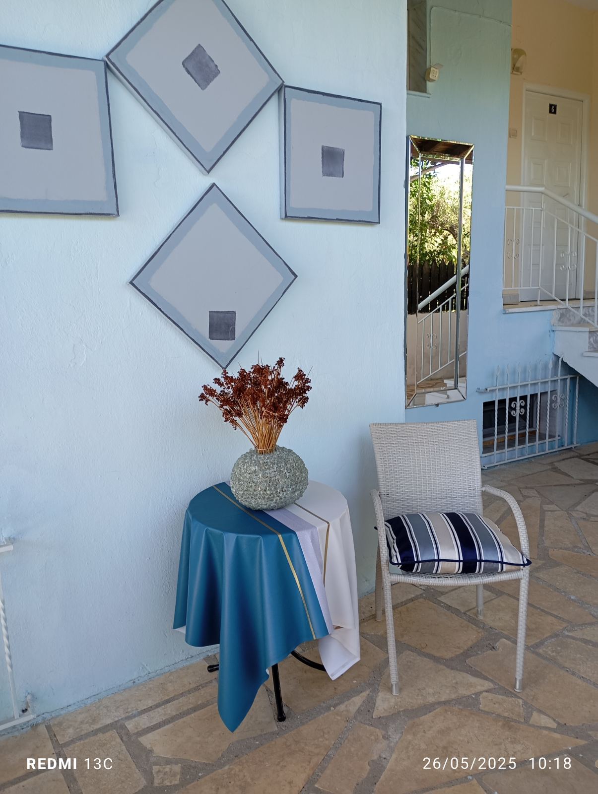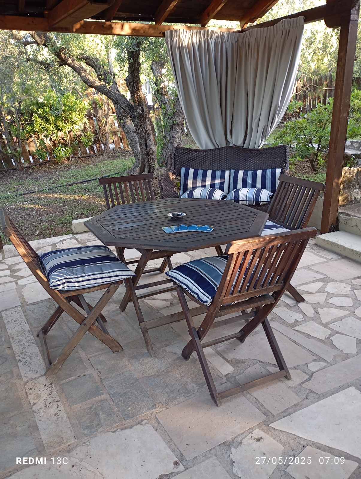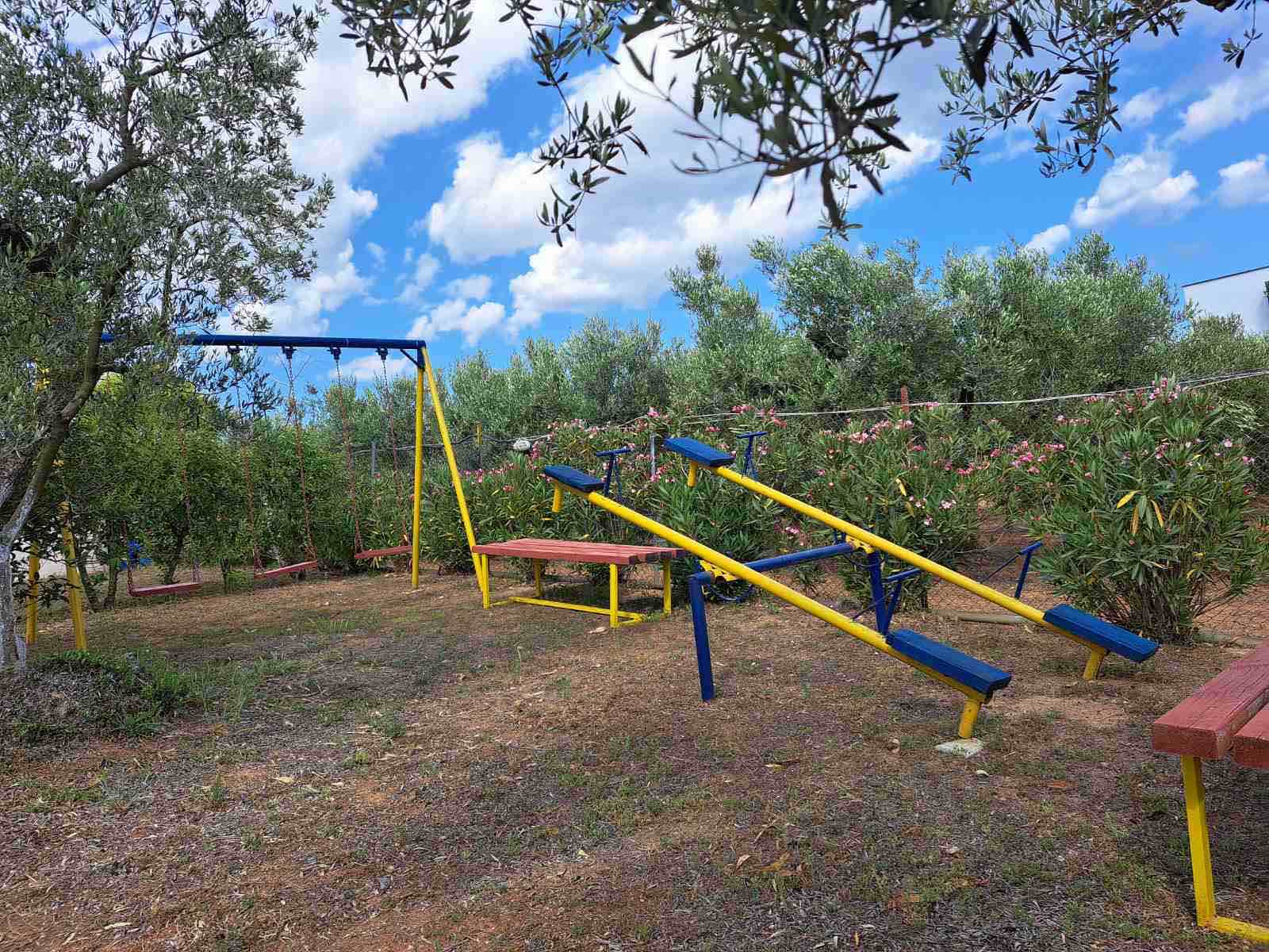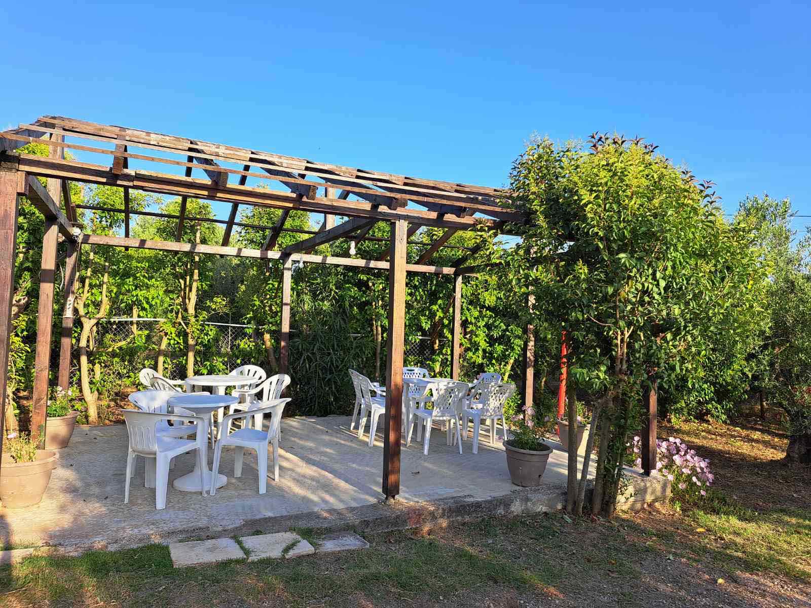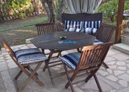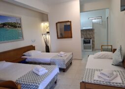 Vila Paradiso – se nalazi u vrtu od maslina, na padini veličine 2-3ha sa impozantnom kamenom kapijom. Vrt poseduje garnituru za sedenje napolju, klackalicu i ljuljaške za decu, roštilj i parking za kola. Dvorište je od proleća do duboke jeseni puno raznobojnog cveća i ujutru Vas budi cvrkut ptica. Nema zagađenja i i gradske buke. Idealno mesto za odmor. Nalazi se na 3 min laganohg hoda do mora, 6 min do peščane plaže i 10 min do centra Dionisosa. Sve smeštajne jedinice su opremljene kupatilom, TV – om, terasom i čajnom kuhinjom. Klima se doplaćuje 3 eur/po danu/po studiju/apartmanu.