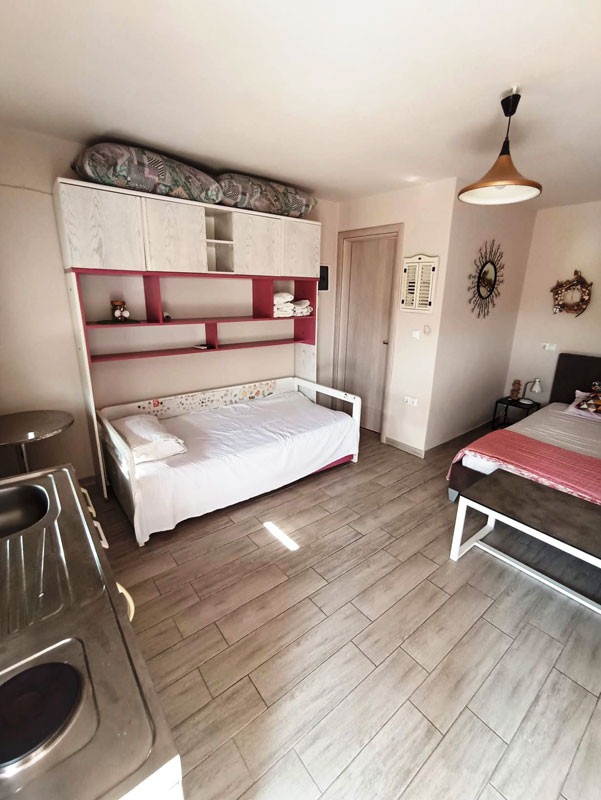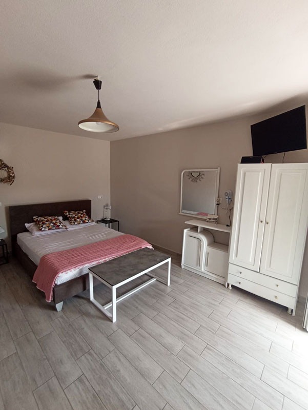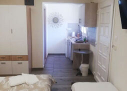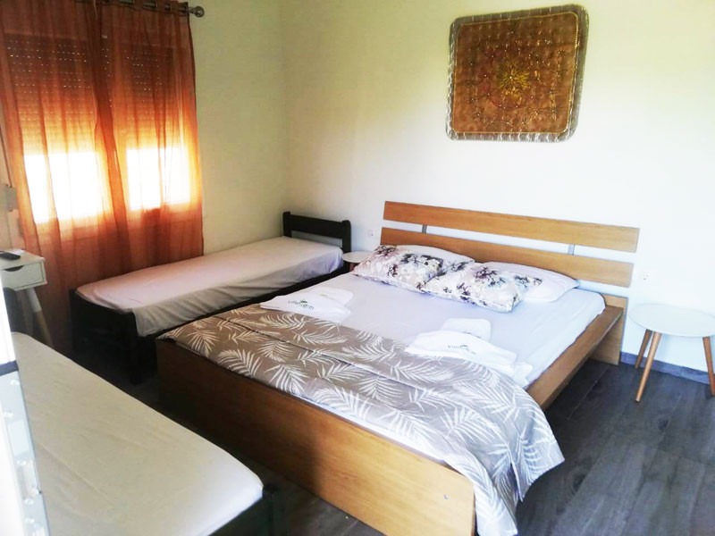 Smeštaj: Vila poseduje veliko dvorište sa puno zelene površine, uređeno za uživanje gostiju. U ponudi su 2 studija u prizemlju i 1 bungalov za smeštaj od 2 do 4 osobe. Smeštajne jedinice su opremljene rešo kuhinjom sa frižiderom i osnovnim posuđem, TV, klima uređajem (korišćenje uz doplatu 6 € dnevno), besplatni WiFi. Posteljina se menja nakon petog noćenja gostiju. Peškiri i ostali higijenski pribor nisu sastavni deo studija (poneti sopstvene). Čistoću studija i apartmana održavaju sami gosti tokom boravka.